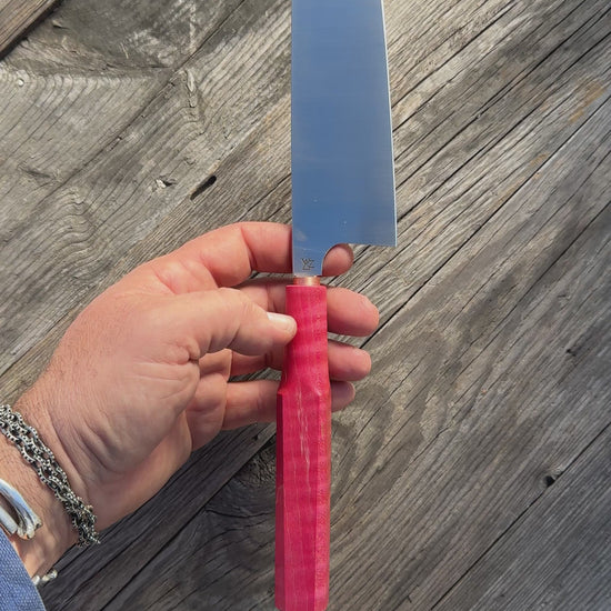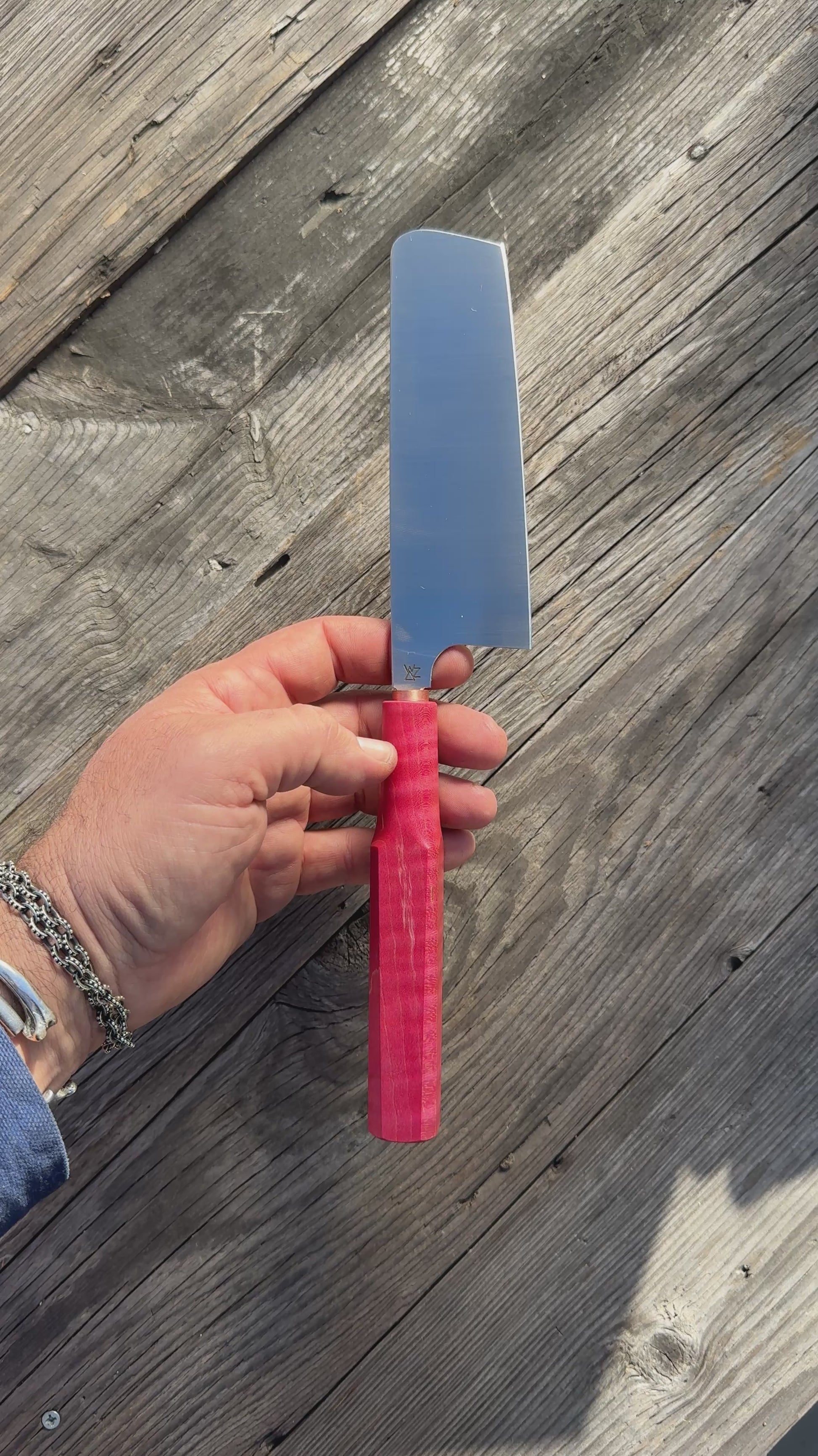 5.5" Nakiri Chef's Knife | Stabilized Curly Maple - Pink